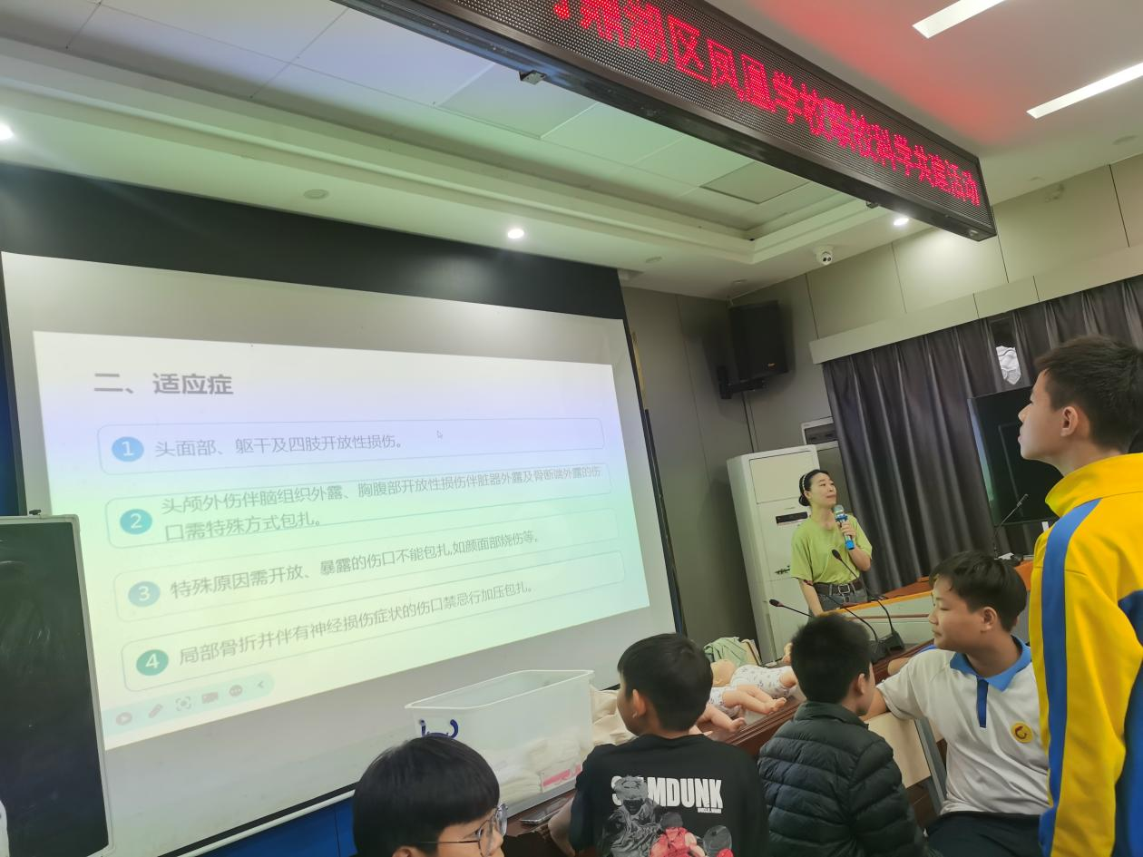 为深入推动青少年急救知识普及,提升校园应急救护能力,2025年12月12日,肇庆医学院全科医学院妇儿教学团队在科技副校长郭雯雯老师的带领下,前往鼎湖凤凰学校开展了“急救科学知识进校园”专题教育活动。活动聚焦气道异物梗阻急救与创伤包扎止血两大主题,通过系统讲授、原理解析与实操训练相结合的方式,为在场师生带来了一堂专业、实用、生动的生命安全课。